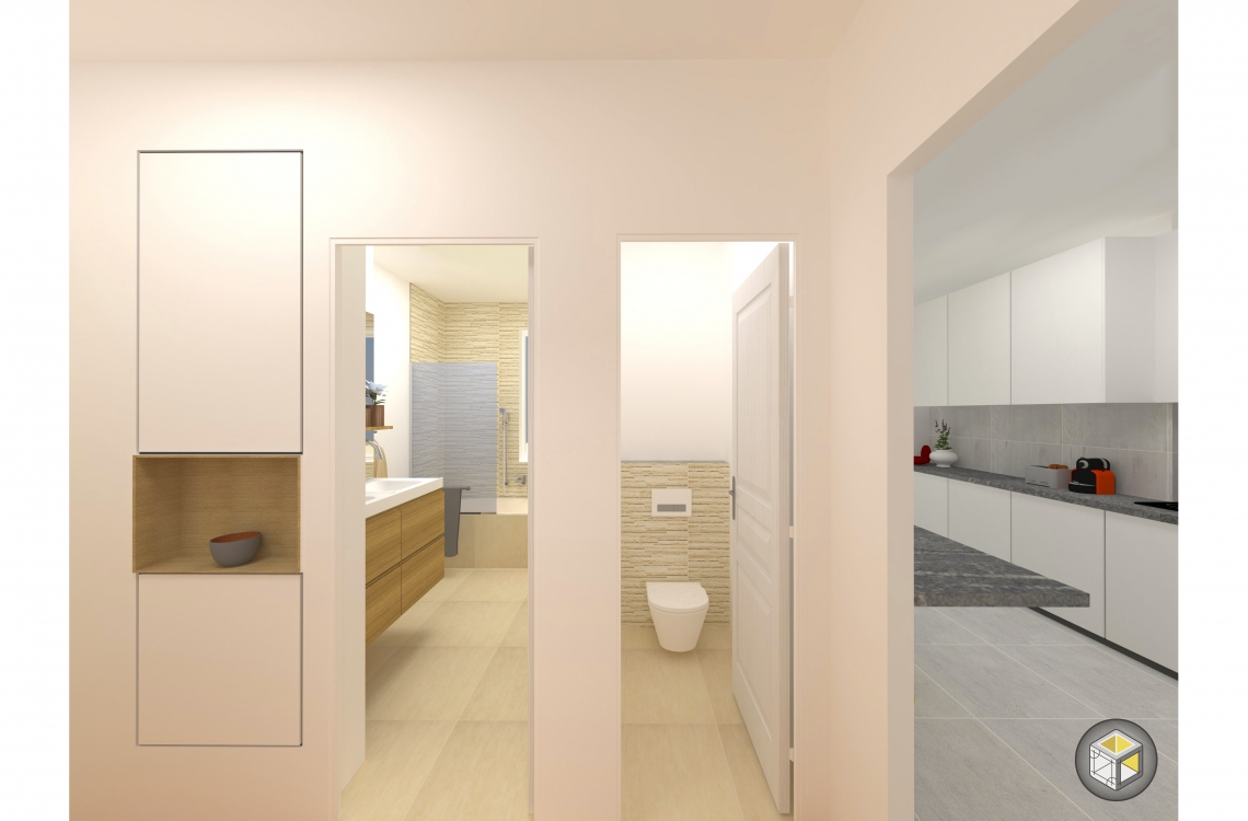 Pour cet appartement, nous avons présenté à notre client plusieurs projets d'agencement : appartement avec deux chambres, cuisine ouverte...
